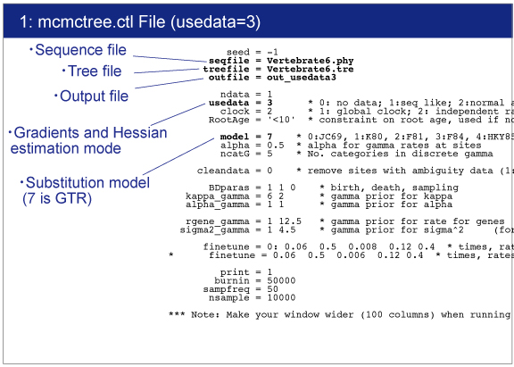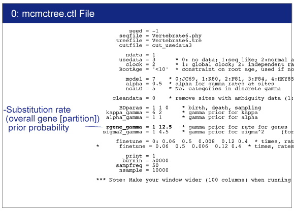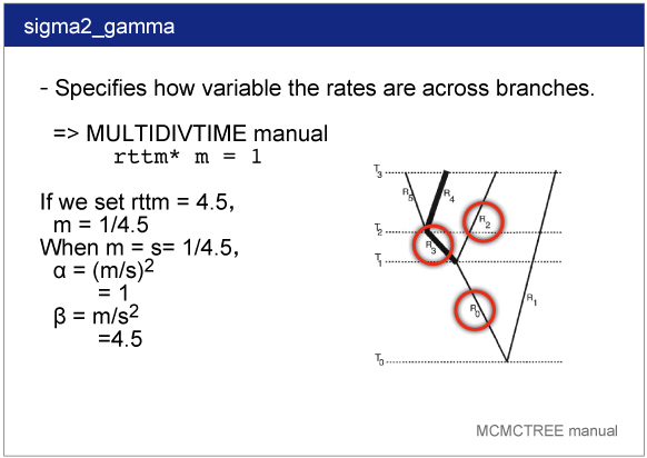 sigma2_gamma specifies how variable the rates are across branches. We specify the shape and scale parameters (α and β) in the gamma prior for parameter σ^2. In the control file, we set