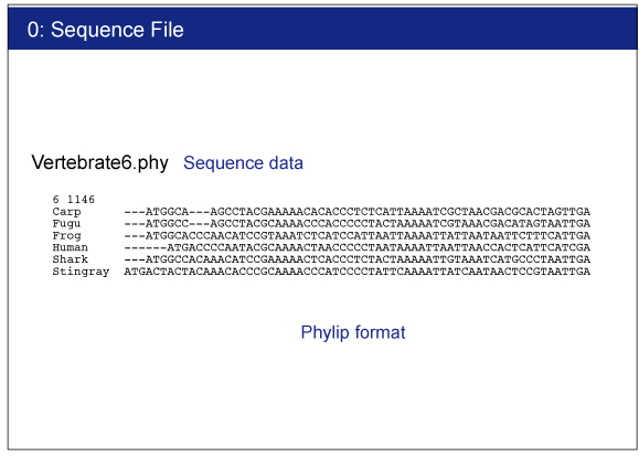 Sequence file. This file contains a nucleotide alignment of 6 vertebrate species.