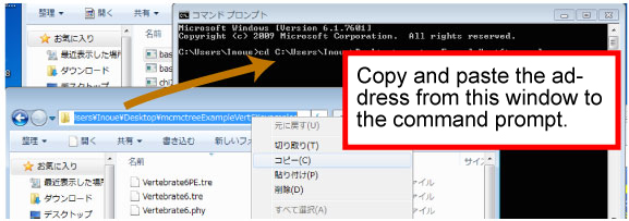 From command prompt, enter mcmctreeEasyExam/examples folder. The command prompt can be found in the following:コマンドプロンプトの場所は,